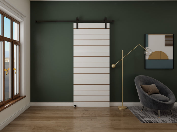 Are you looking to add a touch of rustic charm and sophistication to your space? Meet "The Atlantic," a barn door that's not just a door but a statement piece for your home. With its contemporary 5 panel horizontal design and easy DIY installation, it's the perfect addition to elevate your interior decor.
